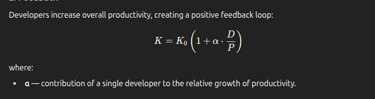 where α — the effective contribution of one developer to relative productivity growth.
